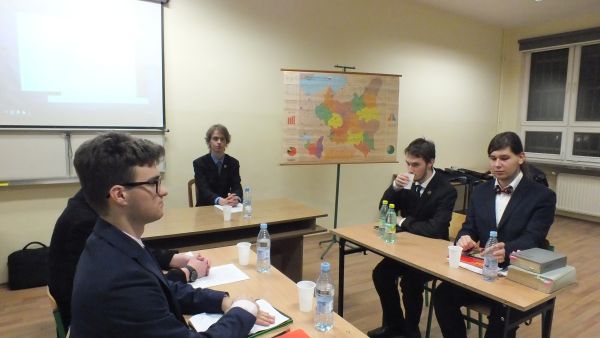 – debatanci: Adrian Grala 3A, Piotr Dmowski 3A, Jakub Piotrowski 2A i Krystian Kaźmierczak 2A.
