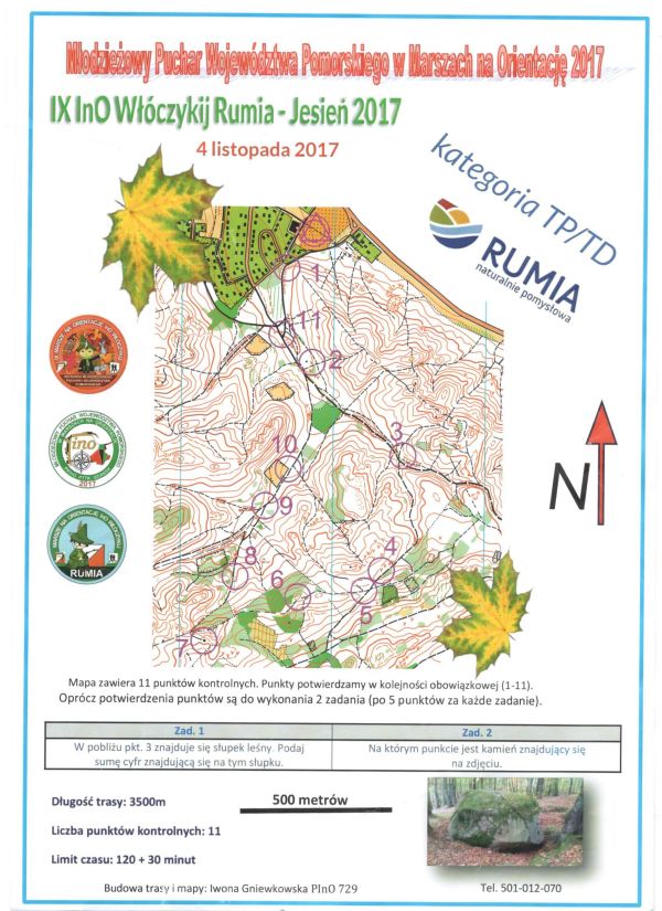 W sobotnie przedpołudnie 4 listopada 2017 roku reprezentantki naszej szkoły, uczennice klasy 1G: Kamila Drygała, Hanna Mackiewicz oraz Michalina Puwalska pod opieką nauczyciela geografii p. Przemysława Czachorowskiego brały udział „VIII Rundzie Młodzieżowego Pucharu Województwa Pomorskiego w Marszach na Orientację IX InO Włóczykij Rumia – Jesień 2017”. W zawodach brało udział ponad 200 osób. Które miejsce zajęliśmy? – jeszcze nie wiemy. Najważniejsza to dobra zabawa na świeżym powietrzu. Uczestnicy korzystali z przepięknej sobotniej pogody i podziwiali barwy jesieni Trójmiejskiego Parku Krajobrazowego. Był to nasz debiut, ale zapowiadamy udział w kolejnych startach.