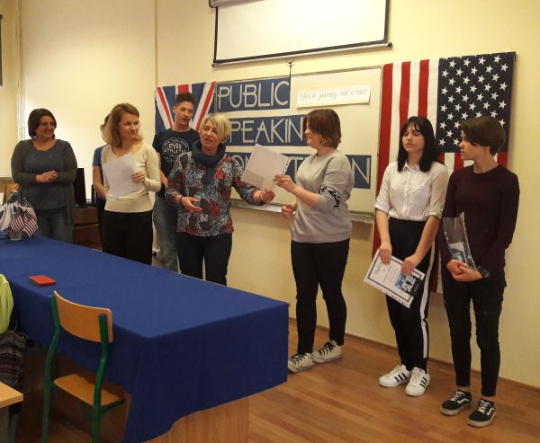 Warsztaty okazały się sukcesem, o czym przekonaliśmy się 24 kwietnia 2018. Tego dnia odbył się szkolny konkurs krasomówczy w języku angielskim. Zadaniem uczestników było przedstawienie swojej opinii nt.”Life is a journey, not a race”. Wszyscy zachwycili publiczność ujęciem tematu, świetną znajomością języka angielskiego, płynnością wypowiedzi i umiejętnościami aktorskimi. Jury składające się z nauczycieli języka angielskiego (p. Danuta Paszak, p. Magda Wojculewicz, p. p. Inga Ziółkowska-Lichocka, p. Joanna Stenka) oraz ucznia klasy II D – Kamila Bobosza za najlepszą uznało wypowiedź Adriany Kołodziejczak (II E), II miejsce zajęła Aleksandra Koleśnik (I E), wyróżnienie otrzymała Marta Zagoździon (I E). Adriana Kołodziejczak zdobyła też uznanie słuchaczy, którzy właśnie jej przyznali nagrodę publiczności.