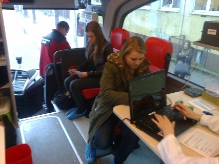 W piątek 30 stycznia po raz kolejny w naszym liceum miała miejsce ambulansowa akcja poboru krwi. Nadzór nad całością akcji sprawował przewodniczący rejonowej rady HDK PCK Gdynia-Sopot pan Andrzej Blok. Ze strony IX LO nadzór sprawowali nauczyciele Leszek Sobieraj i Daniel Czech. Chęć oddania krwi zgłosiło 28 pełnoletnich uczniów. W wyniku surowej selekcji personelu medycznego zakwalifikowano 16 chętnych, którzy łącznie oddali 7200 ml krwi.