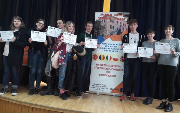 Pierwszy dzień w Oradei rozpoczął się od oficjalnego powitania uczestników projektu ze szkół partnerskich. Zgodnie z tradycją rumuńską, uczniowie szkoły National College “Emanuil Gojdu przywitali nas chlebem i solą, a następnie zaprezentowali tradycyjne tańce oraz piosenki ludowe. Tego dnia mieliśmy również okazję spotkać się z dwiema kobietami sukcesu z Oradei, które omówiły najważniejsze aspekty prowadzenia własnej działalności.