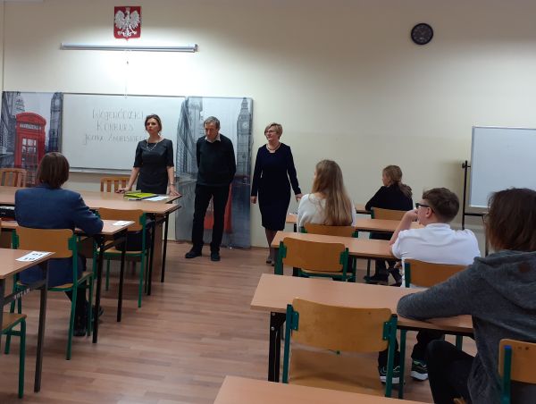 Po oficjalnym otwarciu Konkursu przez Panią Dyrektor Wiesławę Krysztofowicz, nastąpiła część sprawdzająca wiedzę uczestników z zakresu języka angielskiego. Do kolejnego etapu przejdą najlepsi z najlepszych, jednak wszyscy, którzy przystąpili do etapu rejonowego zasługują na szczególne uznanie. Nad organizacją i przebiegiem etapu rejonowego od strony formalnej czuwała Rejonowa Komisja Konkursowa pod przewodnictwem p. Beaty Graszy. Uczestnikami Konkursu i ich Opiekunami zajęła się młodzież naszej szkoły, która witała gości, odprowadzała do szatni i odpowiednich sal oraz prowadziła ich rejestrację, jednocześnie dbając o serdeczną atmosferę i zapewniając młodszym koleżankom i kolegom poczucie bezpieczeństwa na szkolnych korytarzach.