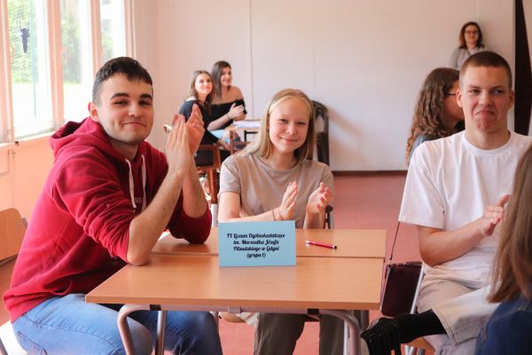 Jako że nasza szkoła była organizatorem konkursu, chciałabym bardzo podziękować za pomoc w przygotowaniach uczniom klasy 2a: Weronice Kościów, Natalii Głowackiej, Jakubowi Wasilewskiemu, Emilii Michalik, Kasi Rohda, Kai Średzińskiej, Partycji Tybus, Julii Załuckiej (2c) oraz uczennicom z klasy 1f: Monice Miler, Kindze Orzoł, Ewie Kusch, Zosi Lekowskiej, Beacie Ekiert i Agacie Hajduk. Dzięki Waszej kreatywności, otwartości i chęci pomocy organizacja tego konkursu przebiegała sprawnie i w miłej atmosferze.
