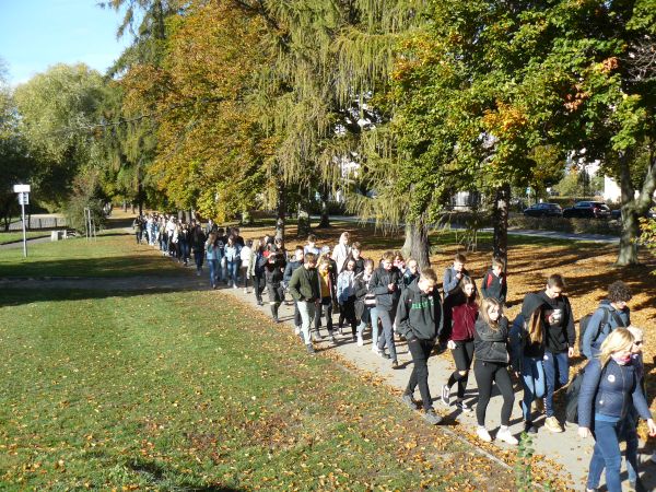 Grupę jak zawsze prowadził Pan Marek Romanowski (KTP PTTK Marynarki Wojennej „Marwojek”) pod opieką druhów z Ochotniczej Straży Pożarnej. Po przejściu około 10 kilometrów dotarliśmy do szkoły.