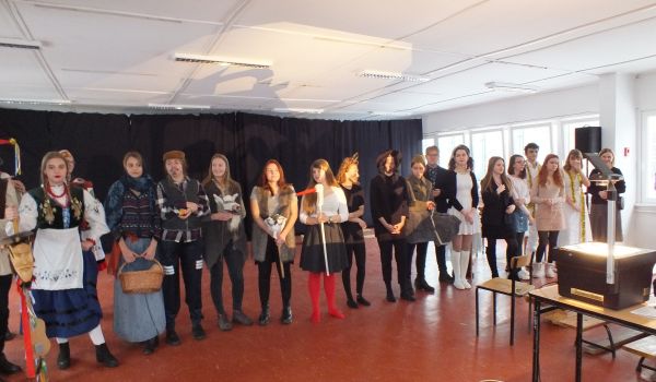 Młodzież zaangażowała się w odtworzenie obyczaju z dbałością o strój, język i rekwizyty. Była to przy okazji lekcja historii naszego regionu. Wystąpiła klasa Ie, maszkarony przygotowali uczennice i uczniowie z klasy IIf.