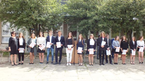 Ponad setka uczennic i uczniów z czternastu klas I i II odebrała dyplomy i świadectwa z wyróżnieniem. Samorząd Uczniowski także przyznał swoje nagrody, imponujące puchary otrzymali: Alan Wittbrodt za całokształt, Olaf Zażembłowski za działalność reżyserską, Bartek Deklewa za osiągnięcia aktorskie, Amelia Morek za ciekawe animacje, Daria Rohda za piękne fotografie i Kamila Pierzga za liczne działania społecznikowskie.