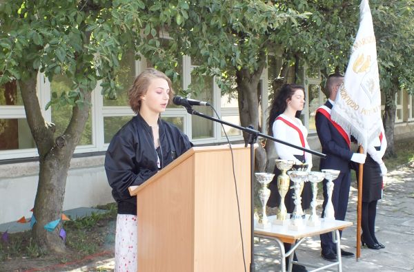 Wszystko odbyło się zgodnie ze szkolną tradycją – poczet sztandarowy, hymn i optymistyczne przemówienie pani dyrektor przypominające najjaśniejsze punkty naszego szkolnego życia. Interesujące okazało się wystąpienie przewodniczącej Samorządu Uczniowskiego Kamili Drygały, która nie ograniczyła się do życzeń wakacyjnych, a posługując się ciekawą metaforyką zwróciła się do swoich koleżanek i kolegów, zachęcając ich do życiowej odwagi i pracy nad sobą.