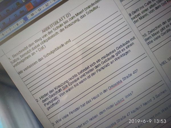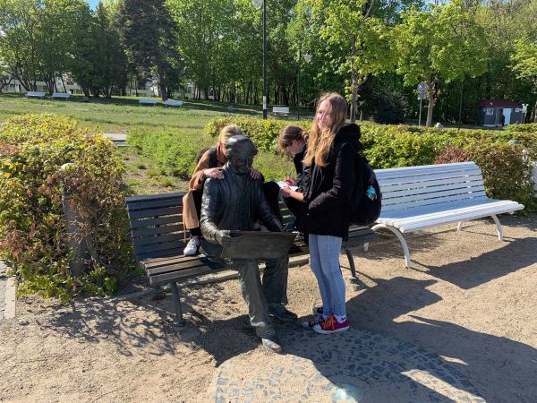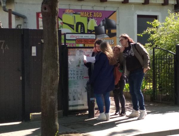 W połowie maja uczniowie klasy IA/E/F mieli możliwość w niekonwencjonalny sposób (nie w szkolnej ławce, lecz w plenerze) sprawdzić swoje umiejętności z języka niemieckiego z zakresu tematyki „Miasto, wskazywanie drogi”.