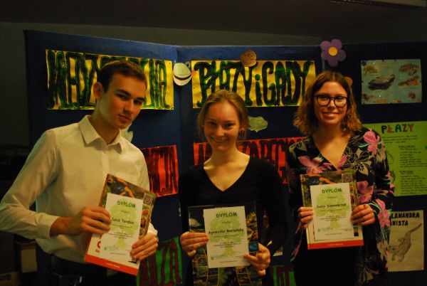 Agnieszka Mariańska, Daria Siemieńczuk i Jakub Terebus odebrali nagrody (kolejno za 1,2,3 miejsce) w konkursie przyrodniczym na temat płazów i gadów podczas tegorocznej Międzyszkolnej Konferencji Przyrodniczej PŁAZY I GADY GDYŃSKICH SIEDLISK zorganizowanej przez Oddział Miejski LOP w Gdyni. Gratulacje.