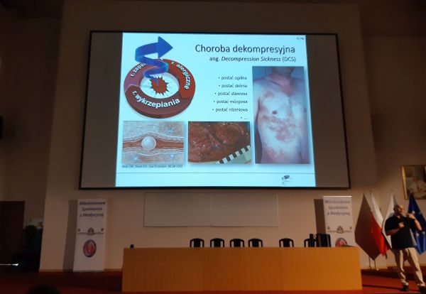 Dr hab. n. med. Jacek Kot z Krajowego Ośrodka Medycyny Hiperbarycznej Instytutu Medycyny Morskiej i Tropikalnej GUMed w rewelacyjny sposób opowiedział nam o problemach, z jakimi spotka się nurek, jakie są obecne metody leczenia m.in. choroby dekompresyjnej i jak ciśnienie wpływ na nasz organizm, Spotkanie z dr Bukowskim zapadnie nam także w pamięci – i jego krótka historia medycyny Smaczku wykładom dodał fakt, że dwie nasze uczennice – Kornelia Kaczmarska i Wiktoria Kąkol otrzymały nagrody od organizatorów za najciekawsze pytania zadane podczas dyskusji końcowej. Bardzo gratuluję.