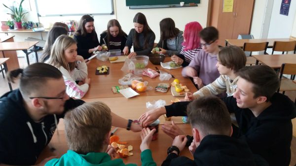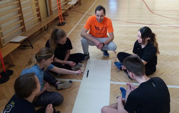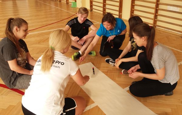 Zmaganie się z różnorodnymi zadaniami matematycznymi, połączone z wysiłkiem fizycznym, nie było dość prostą sprawą. Zadaniom towarzyszyły ogromne emocje, było również skupienie i współpraca w zespole. Kolejnym pomysłem była gra planszowa wielkiego formatu i połączenie lekcji wychowania fizycznego z biologią, przyrodą i anatomią. Okazało się to strzałem w dziesiątkę, gdyż uczniowie mogli zrobić sobie powtórkę materiału w sposób bardziej zabawowy z nutką rywalizacji. Na lekcjach nie zabrakło również tematyki dotyczącej zdrowego odżywiania oraz wartości kalorycznych i odżywczych owoców. Robiliśmy kolorowe sałatki owocowe. Było smacznie i zdrowo ? Dopełnieniem lekcji były wspólne wyjścia na deptak orłowski, gdzie uczniowie mogli się wyciszyć duchowo i zregenerować siły.