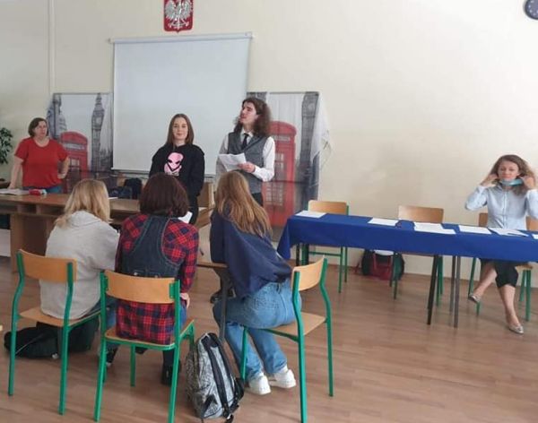 Ostre współzawodnictwo, dużo dobrej zabawy i gorących emocji – to towarzyszyło klasom drugim i Jury Turnieju Wiedzy o Krajach Europejskich. 6 trzyosobowych drużyn stanęło w szranki aby wykazać się wiedzą o krajach i językach europejskich. Zespoły mierzyły się w 7 różnych zadaniach – od znajomości flag, stolic i słynnych miejsc po umiejętność rozpoznawania języków, sław z krajów Europy aż po predyspozycje językowe. Panu Dyrektorowi Krzysztofowi Brodzińskiemu oraz Jury w składzie: p. Magda Wojculewicz-Grabowska, p. Joanna Stenka, p. Katarzyna Korczak, a także przedstawicielom Samorządu Uczniowskiego zaimponował bardzo wysoki poziom wiedzy uczestników. Po emocjonującej dogrywce o brąz i srebro między trzema klasami na podium stanęli: