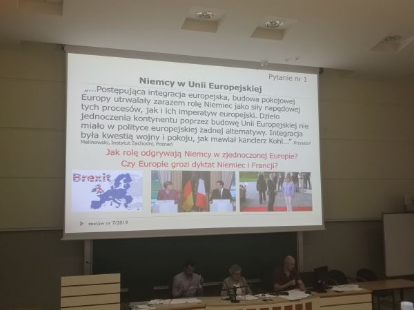 W czwartek 13. czerwca 2019 r. nasi uczniowie: Wanesa Małecka, Monika Pietroń, Daniel Kwaśnik i Jakub Terebus wzięli udział w półfinale konkursu wiedzy o Niemczech „Deutsch – Land – Nachbarland”, który co roku jest organizowany przez gdański Instytut Herdera na UG.