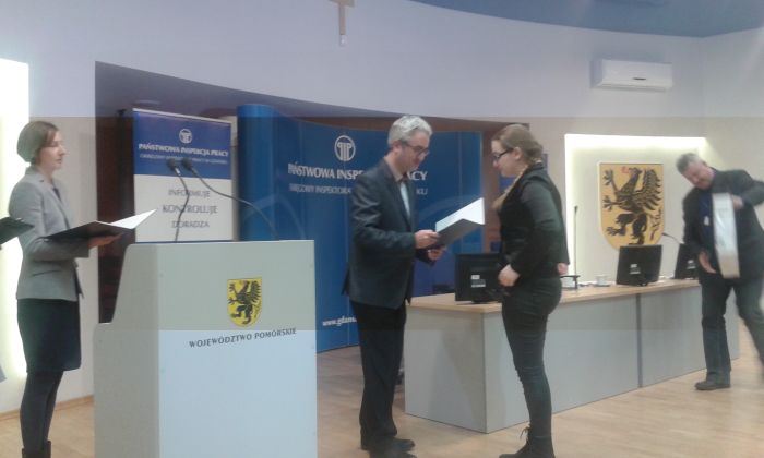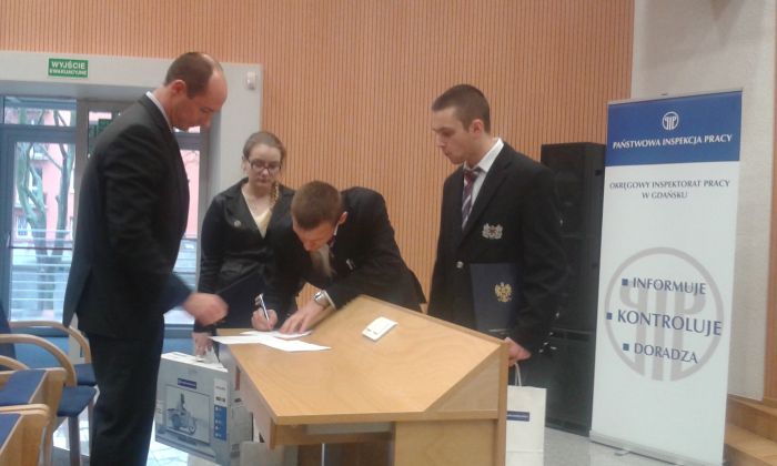 Dnia 17 grudnia 2015 roku w Urzędzie Marszałkowskim w Gdańsku, odbył się II etap konkursu pt. „Poznaj swoje prawa w pracy”, organizowany przez Państwową Inspekcję Pracy. Naszą szkołę reprezentowali: Feliks Gorzeński z klasy I a i Daria Treder z klasy III a.