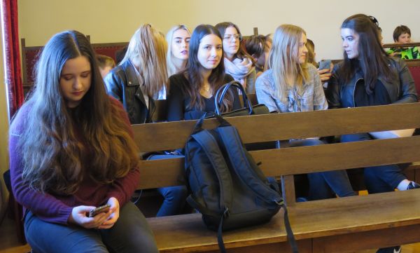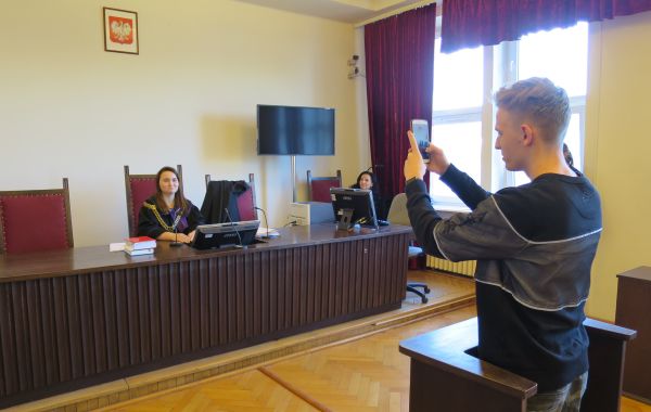 Byliśmy świadkami przesłuchania kobiety oskarżonej o sfałszowanie dokumentów w celu uzyskania pracy, tj. świadectwa pracy i dyplomu ukończenia studiów wyższych. Wysłuchaliśmy wyjaśnień oskarżonej, mów prokuratora i obrońcy. Mieliśmy okazję obserwować pracę pani sędziny i stenotypistki. Rozprawa zakończyła się przyznaniem oskarżonej do winy, złożeniem przez nią wyjaśnień, dzięki czemu kobieta otrzymała mniejszy wymiar kary, niż żądał prokurator.