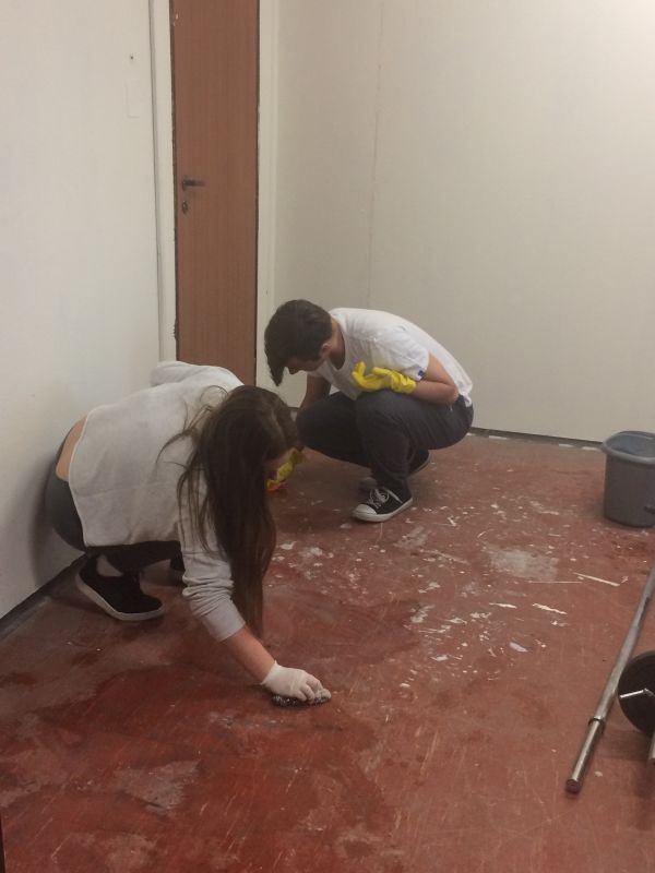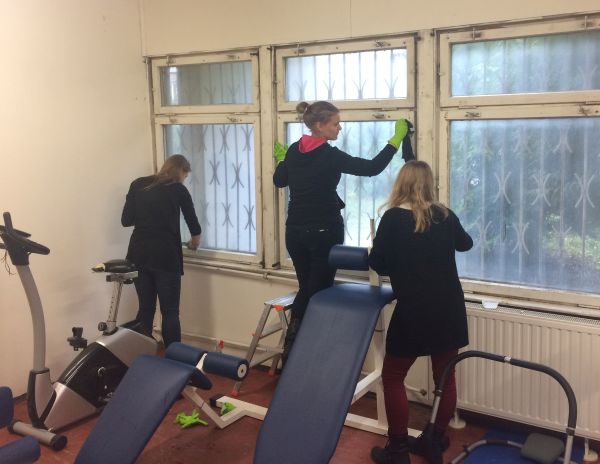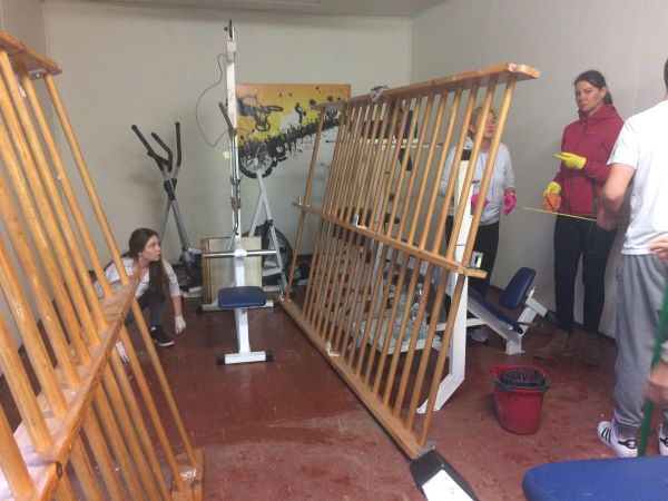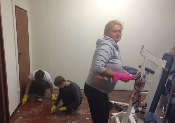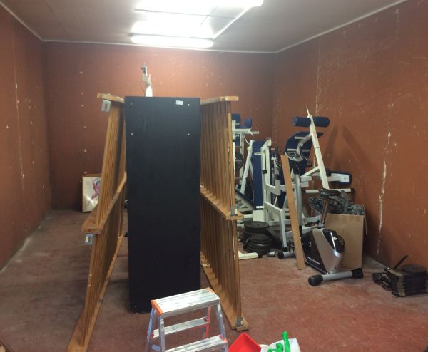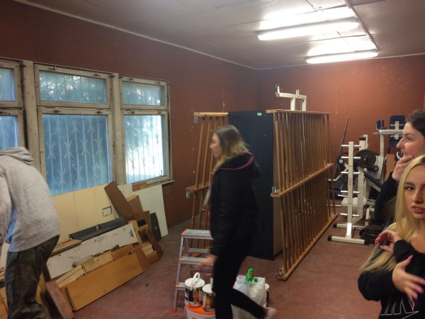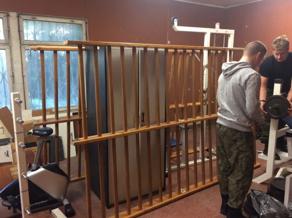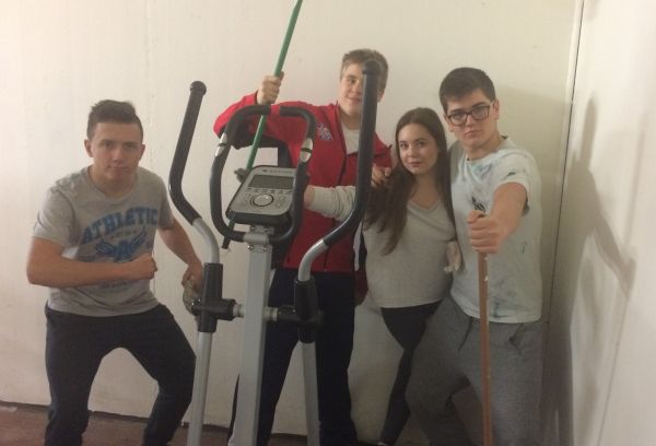 udało się zaadaptować stare, brudne i bezuzyteczne pomieszczenie magazynowe na siłownię. Brud mocno się zagnieździł i na pewno pamięta lata 70 – te ubiegłego wieku. Dzięki wsparciu finansowemu rodziców i wytrwałej pracy uczniów uzyskaliśmy dodatkowe miejsce do ćwiczeń. Kilka dni potrzebowali uczniowie, aby wynieść niepotrzebne sprzęty, okryć wszystko folią i rozpocząć malowanie.
