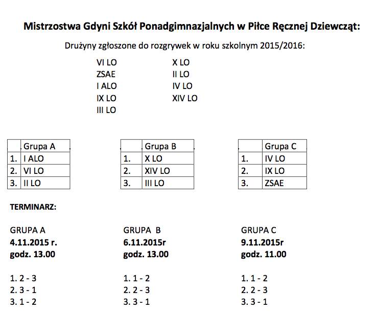 W przyszłym tygodniu rozpoczniemy Mistrzostwa Gdyni Szkół Ponadgimnazjalnych w Piłce Nożnej Chłopców.