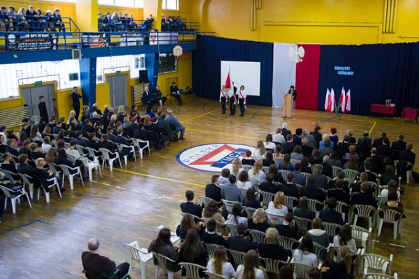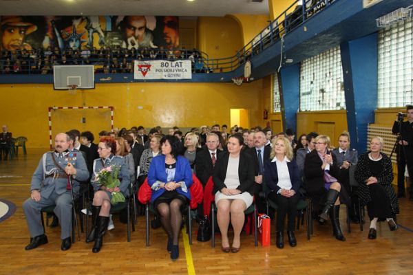 Pani Dyrektor Krysztofowicz, zwracając się do wszystkich zebranych, podkreśliła , jak ważną wartością dla każdego narodu jest niepodległość i jak istotne jest wychowanie młodego pokolenia tak, by tę wartość umiało pielęgnować i chronić. Zaznaczyła też, że w tej misji szczególnie wspierają szkołę Związek Piłsudczyków i Sybiracy, współuczestnicząc w kształtowaniu postaw patriotycznych młodzieży IX Liceum. Wspominając udział absolwentów naszej szkoły w życiu społecznym i politycznym Gdyni, zachęciła wszystkich uczniów do podejmowania takich inicjatyw ku wspólnemu pożytkowi.