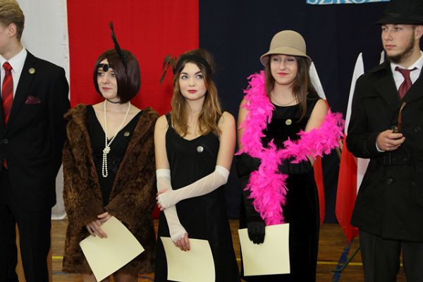 Nastąpiło też wręczenie nagród w konkursie historycznym „ Wielka wojna a sprawa polska” oraz w zorganizowanym po raz trzeci przeglądzie mody, podczas którego podziwialiśmy stroje z lat międzywojennych. Konkurs „Lata dwudzieste, lata trzydzieste” zainicjowany przez p. wicedyrektor Wandę Łęszczak cieszy się dużą popularnością, a finalistki zawsze są wdzięcznym obiektem sesji zdjęciowej.