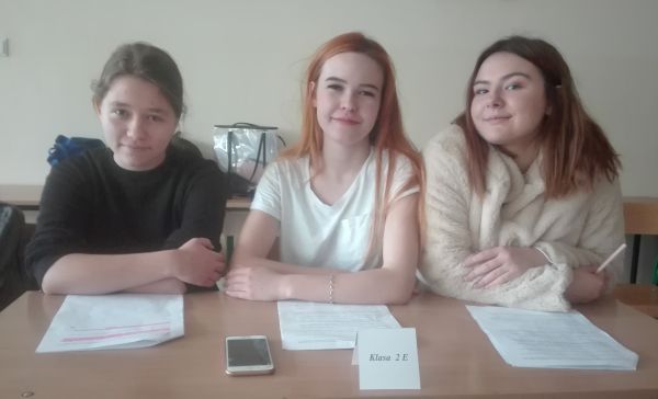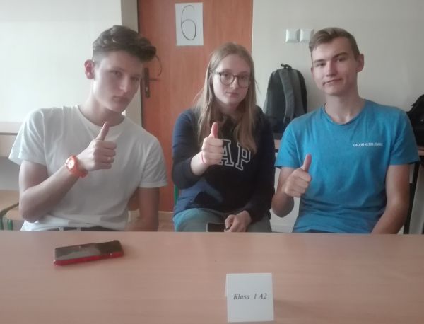 V miejsce ex aequo klasa 1 A2 (Kamil Jeżyk, Filip Chmielewski i Zofia Pietrzak) i klasa 1 E1 (Natalia Wach i Julianna Sołdańska)