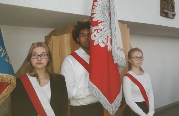 Delegacja uczniów i poczet sztandarowy uczestniczyli we mszy w Kolegiacie Gdyńskiej.