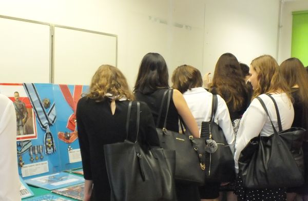 Po prelekcji, zachęcani przez pana Karpińskiego, obejrzeliśmy wystawę. Znajdowały się tam krzyże żelazne w wersji niemieckiej i CK, medale rosyjskie i przede wszystkim polskie odznaczenia wojskowe, w tym dwa najsłynniejsze: Virtuti Militari i Order Orła Białego. Były tam także odznaczenia ukraińskie dla tych, którzy walczyli z Polską o tzw. Galicję. Przy medalach znajdowały się opisy i ciekawostki na ich temat.