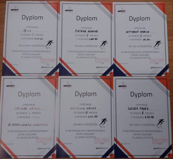 Chłopcy: Kacper Grubba: I miejsce w skoku wzwyż, Marcin Wittbrodt: I miejsce w biegu na 100 m, Paweł Szejko: II miejsce w biegu na 1500 m, Maciej Wojtowicz: III miejsce w biegu na 400 m, Marcin Wittbrodt, Maciej Wojtowicz, Paweł Szejko, Błażej Krause: I miejsce w biegu sztafetowym 4 x 400 m.